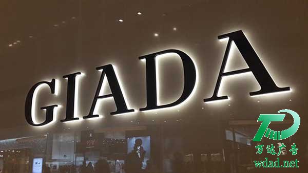 萬達(dá)廣告公司專業(yè)研發(fā)與生產(chǎn)的不銹鋼背發(fā)光字看起來光亮醒目,亮麗高端,企業(yè)VI首選。