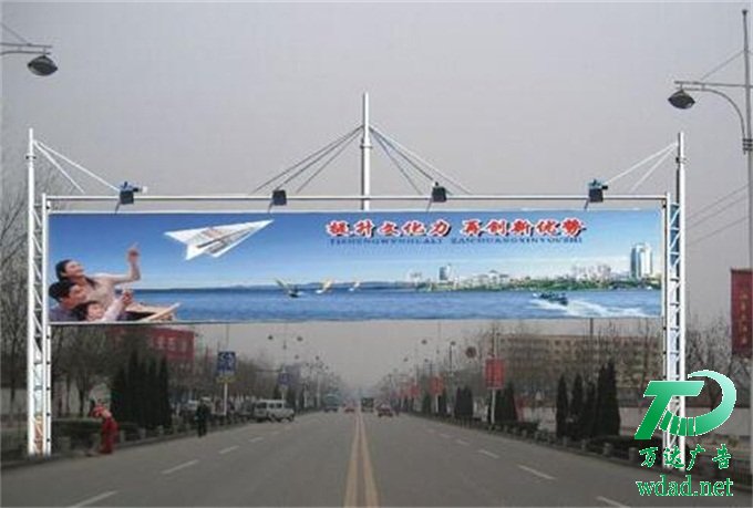 【釋義】:跨街廣告牌是一種街頭廣告形式,常見于繁華街頭,貫穿左右,展現(xiàn)量巨大,廣告效益大。跨街龍門架廣告牌是提升企業(yè)形象,提高品牌價值的方式,同時也是眾多廣告公司垂涎的廣告地盤。跨街廣告牌制作中常用到的材質有,鋼立柱、鋼管、不銹鋼管、led/熒光燈光源、鋼化玻璃、石材、戶外燈箱材料布等。