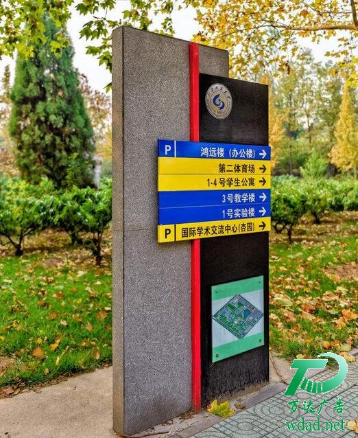 現(xiàn)代學校既是人類文化傳承的主要陣地,一也是學生能力和人格培養(yǎng)園地。所以學校對學生的培養(yǎng),除了老師們的言傳身教,還會根據(jù)學校的特征,營造一種特有的文化氛圍。這種氛圍能對學生產(chǎn)生潛移默化的影響,對學生價值觀、審美觀的培養(yǎng)也是非常重要的。因此在學校導視系統(tǒng)中,學校標識牌不但要實現(xiàn)基本的導視指示功能,還應該能夠突出學校特有的文化氛圍。甚至是利用學校導視系統(tǒng)中的標識牌去營造這種氛圍。根據(jù)以上特點,我們可以將學校標識牌分為以下兩個個大的種類。